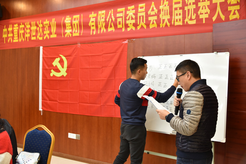 洋世達集團黨委于2019年11月8日,在集團公司一樓會議室召開全體黨員大會。會議由黨委副書記董進飛同志主持,集團公司董事長楊勇同志及南坪鎮(zhèn)黨政辦祝芳芳同志蒞臨大會并發(fā)言。換屆選舉大會按照上級黨委的要求,由上屆黨委書記何長君同志做工作報告,采用無記名投票的方式進行選舉,產(chǎn)生了新一屆黨委委員。本屆黨委委員由趙全林、董進飛、朱莎、楊鵬、劉君梅五位同志組成。