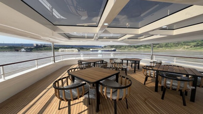 38米新能源游船,以卓越的船舶性能與奢華的內(nèi)部裝飾并重,引領(lǐng)水上旅游新潮流。其搭載的高效環(huán)保動力系統(tǒng),確保零排放航行,同時擁有卓越的續(xù)航與穩(wěn)定性能;內(nèi)部裝飾則融合了現(xiàn)代美學(xué)元素,營造出既典雅又舒適的乘坐空間,為游客帶來前所未有的水上旅行享受。 |